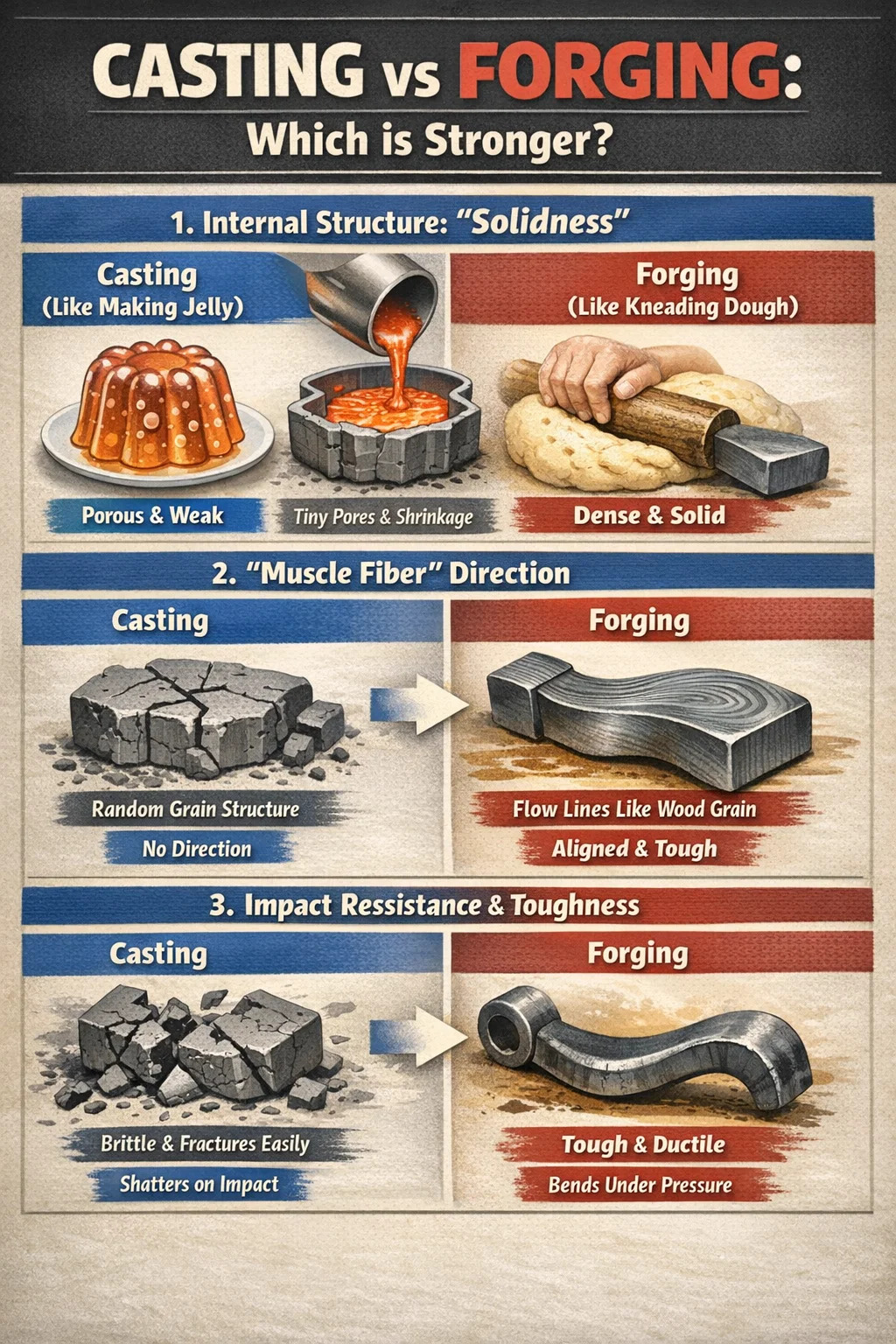 If we compare metal to food ingredients, casting is like "making jelly," while steel forging is like "kneading dough." Although both can create the desired shape, the internal density and impact resistance are completely different.